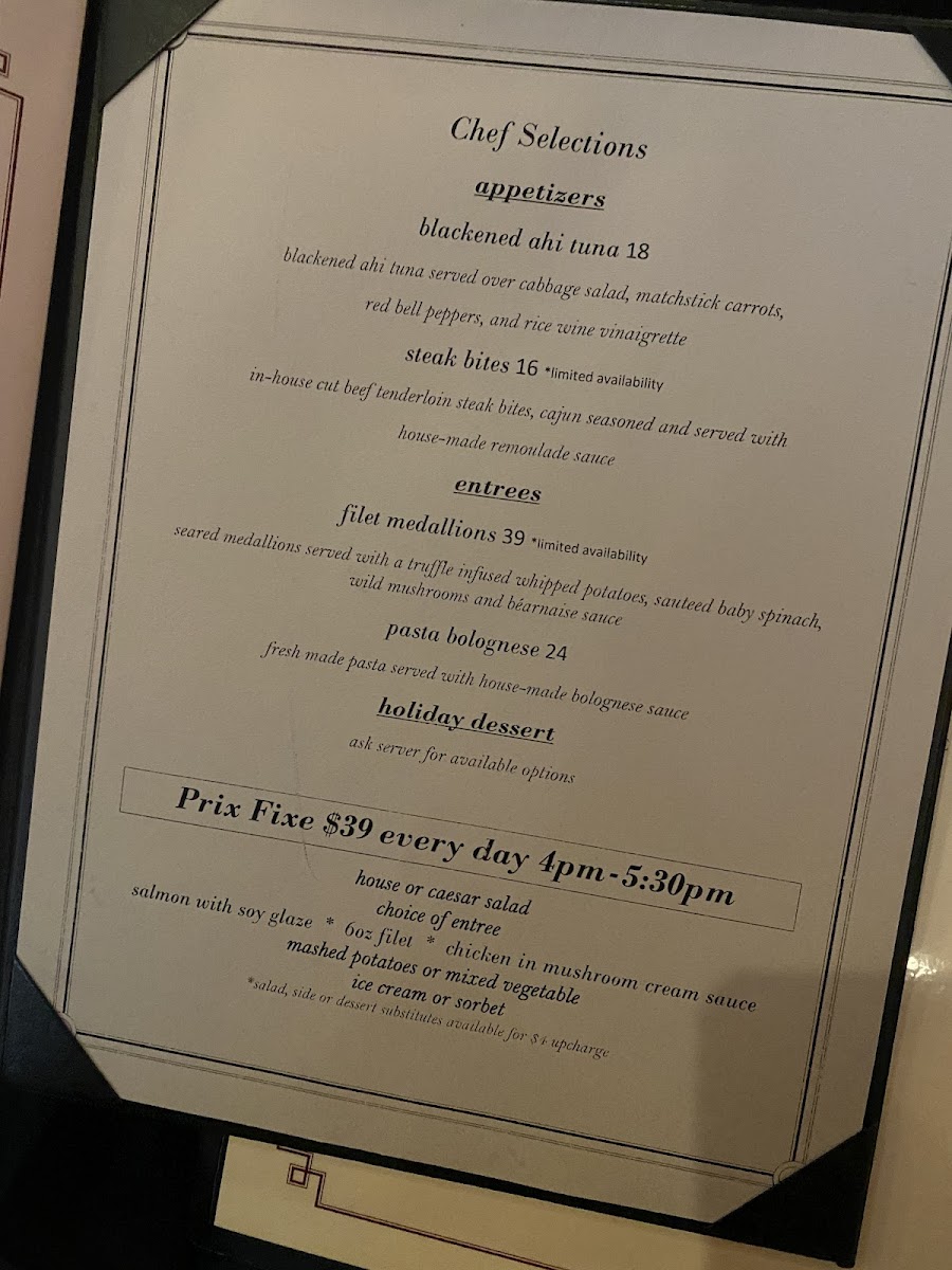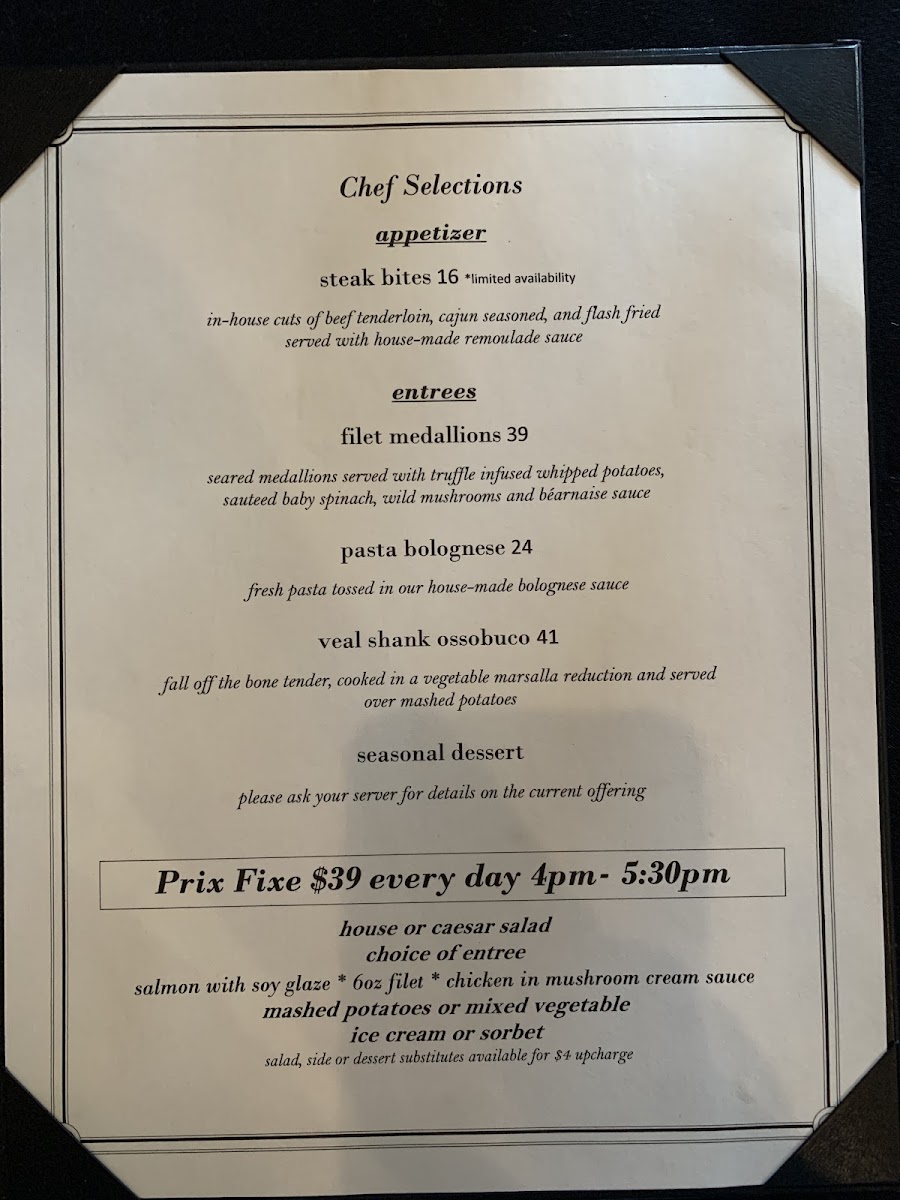Don't miss the roasted red pepper soup and Brussels sprouts with bacon, both raved about for their depth of flavor.